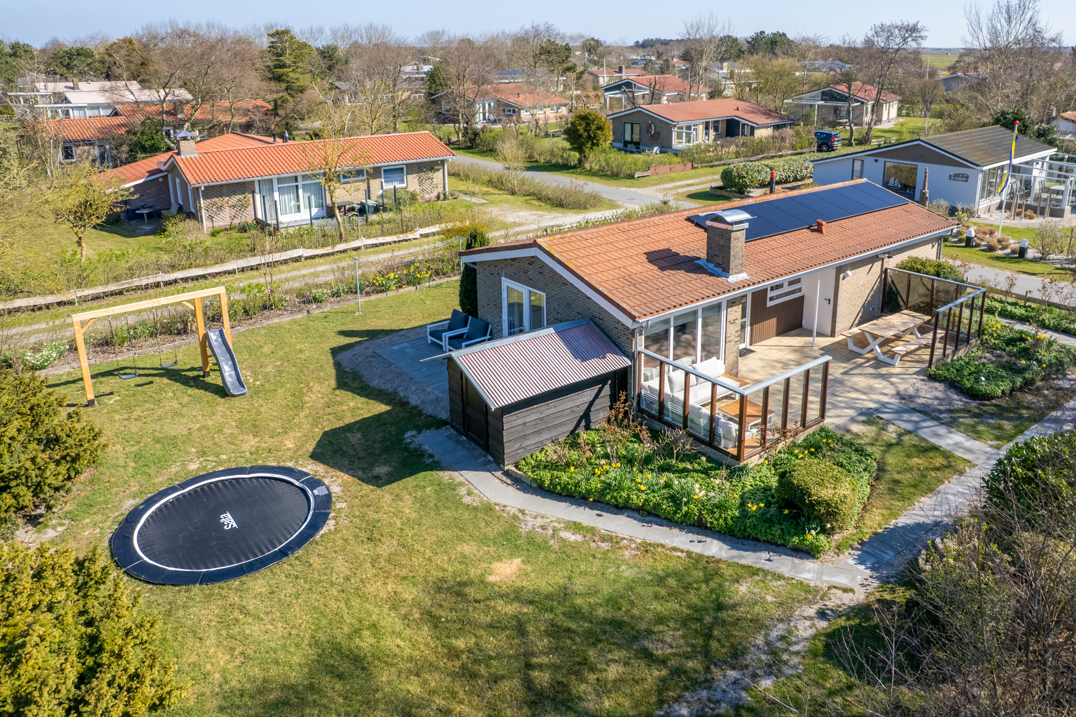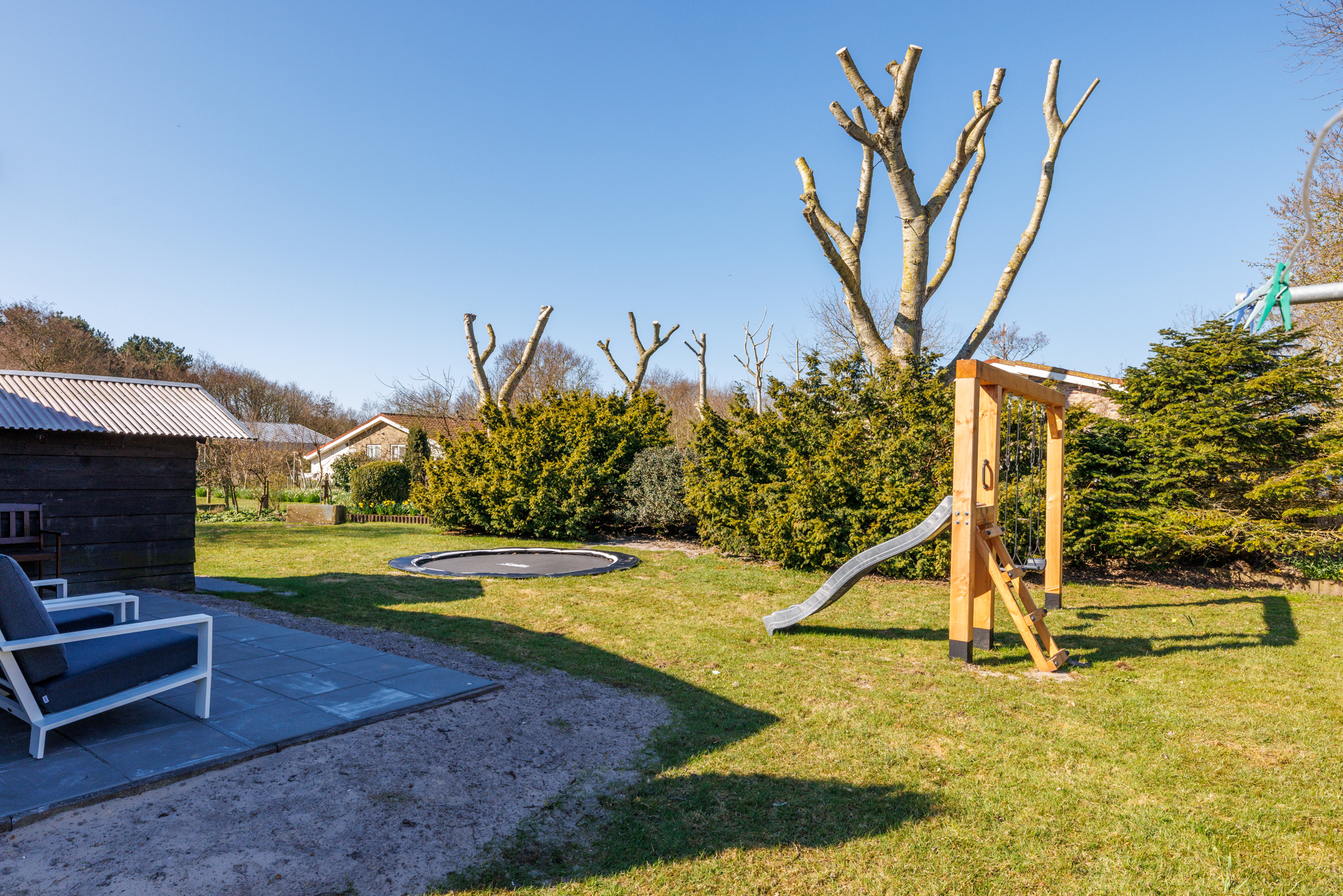 Voor de kleintjes is er volop speelplezier in de tuin, met onder andere een dubbele schommel met glijbaan en een grote trampoline.