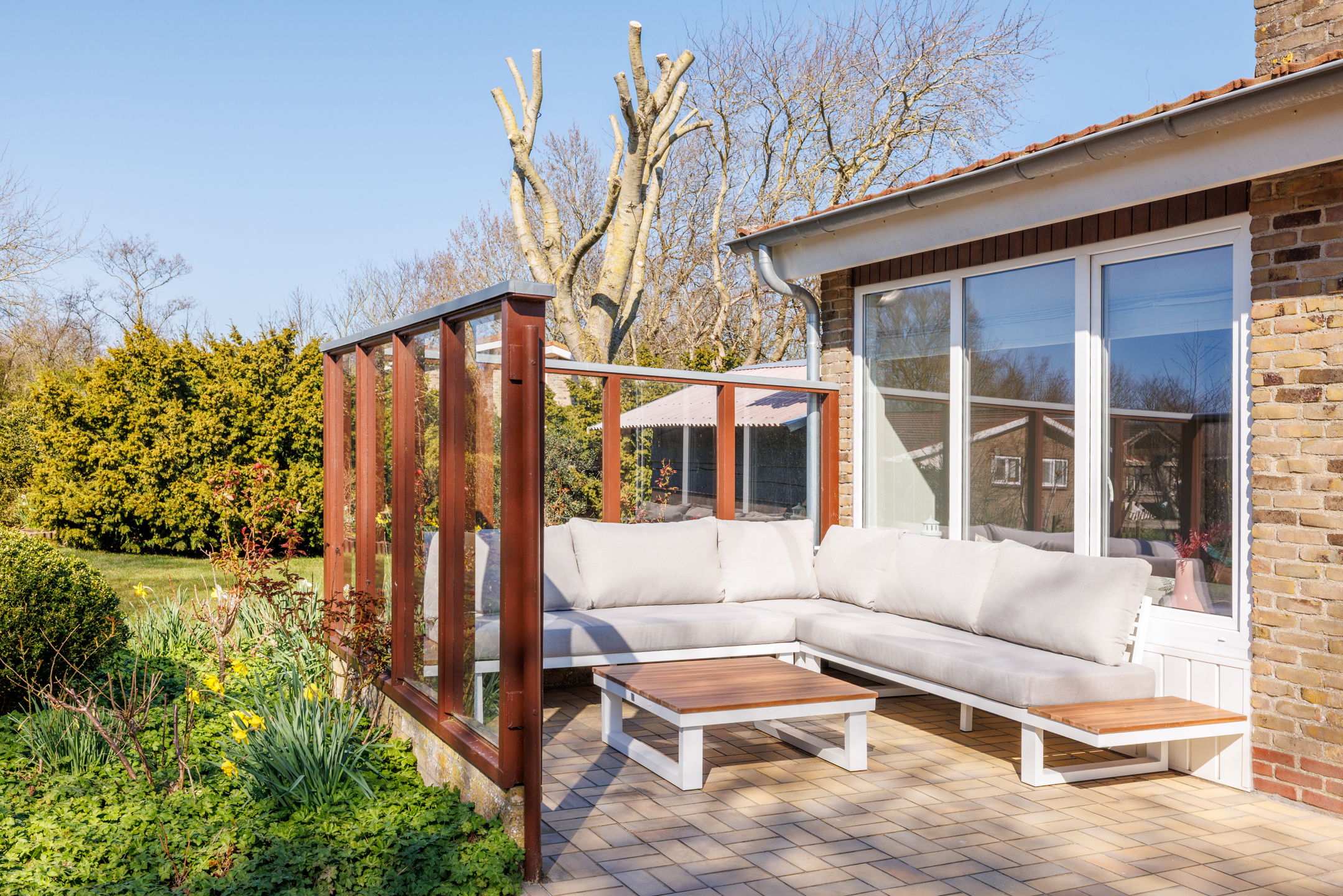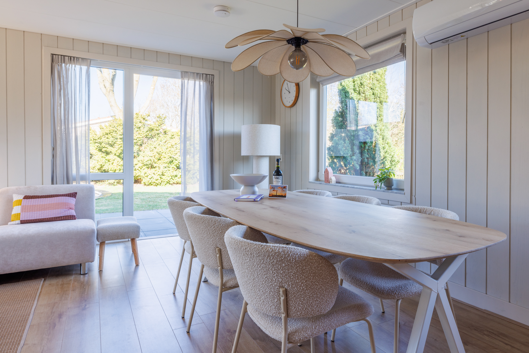 De ruime woonkamer is voorzien van airconditioning, nieuw meubilair en openslaande deuren naar een zonnig terras aan de westzijde – een heerlijke plek om te ontspannen en te genieten van de zonsondergang op de comfortabele loungeset. Aan de zuidzijde bevindt zich nog een ruim terras met een buitentafel, ideaal om buiten te eten.