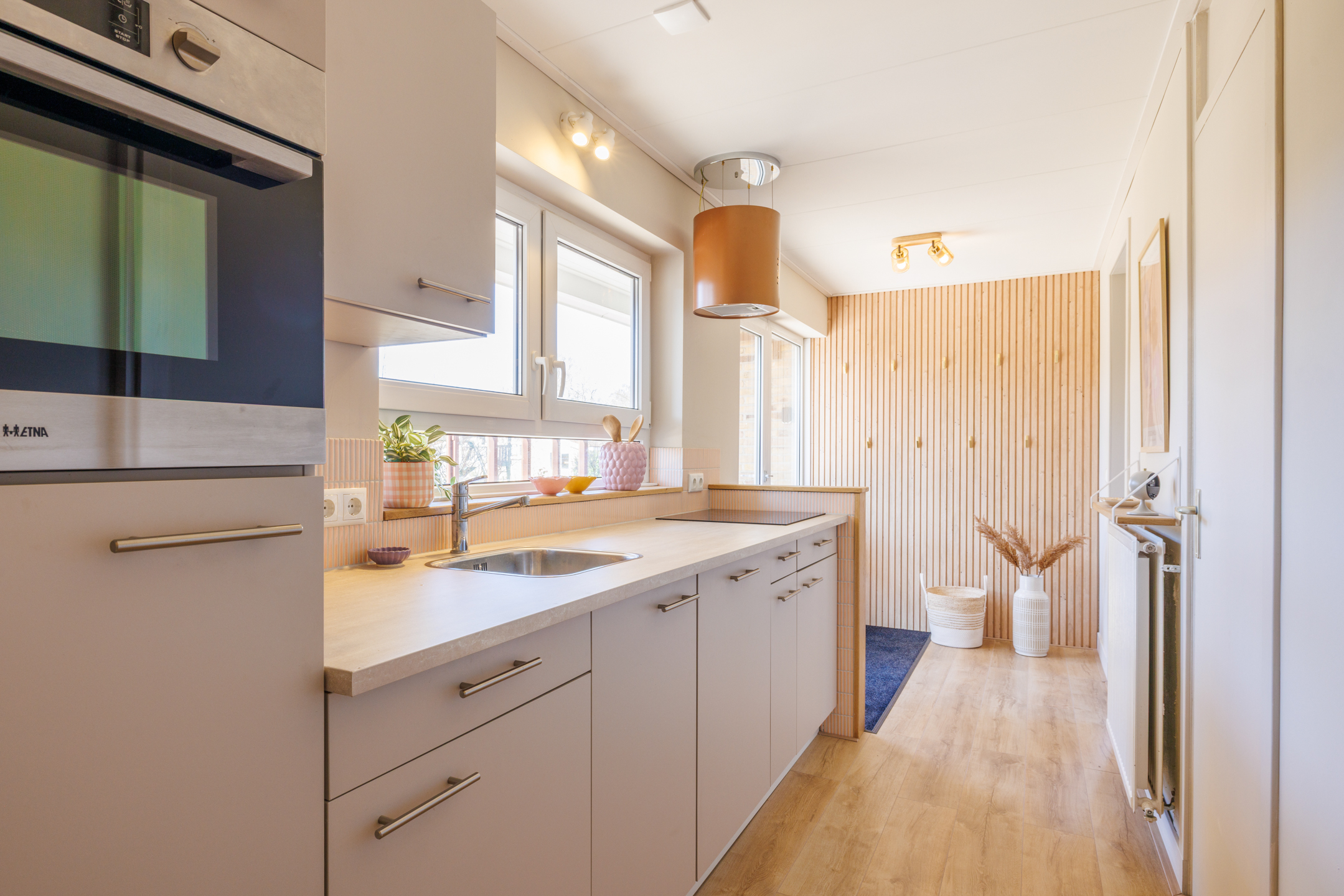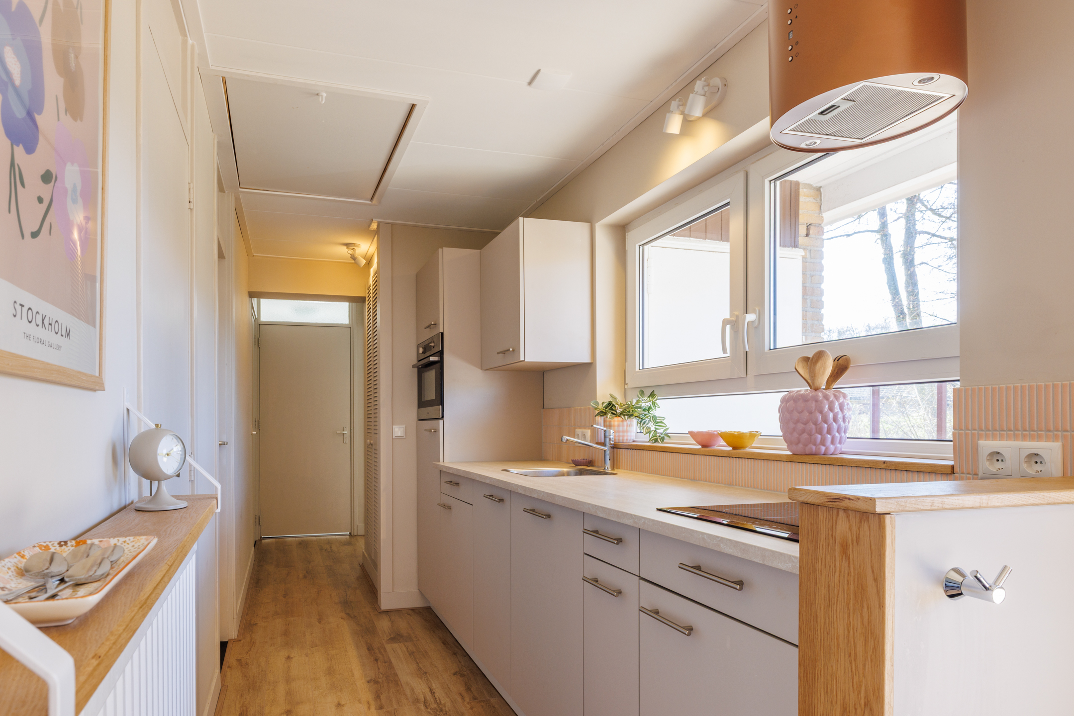 De volledig vernieuwde keuken is uitgerust met moderne apparatuur, waardoor koken een waar genoegen wordt. In de ruime badkamer vindt u een dubbele wastafel. Daarnaast beschikt Juul over een wasmachine en droger – handig voor langere verblijven of vakanties met kinderen.